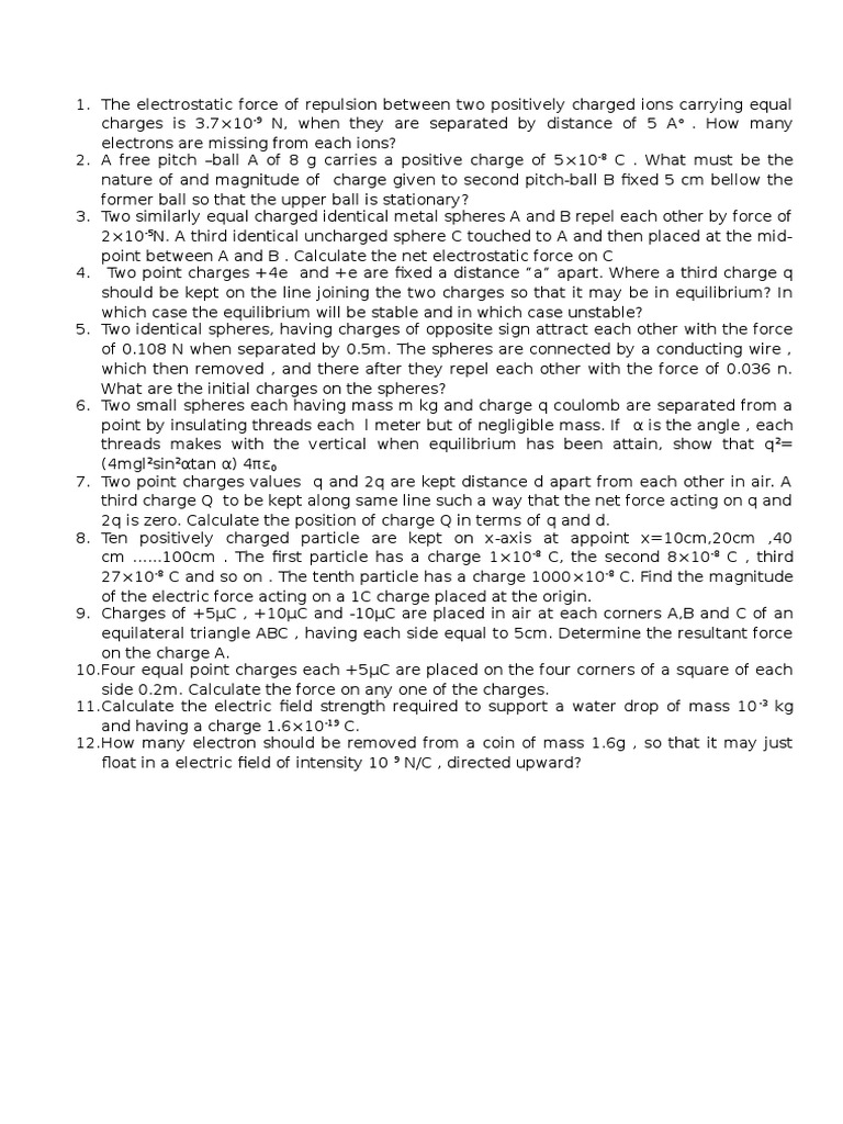 A negatively charged rod is brought near, but does not touch the spheres, as shown in the. We need to find the charge on the left sphere. Each charge is +2.0 µc. But how do we know there is such a thing as charge? For example, the annihilation of an. There are two types of these show how charged particles will move in the electric field. (image to be added soon). When discussing the electric potential between two charges, it is important to specify whether the as you'll see, finding the electric potential energy of a charged particle involves some analogous this field imparts a force f on other charged particles q. The net force on a charged object may change due to the forces between multiple electric fields due to. The electrical field force acts between two charges, in the same way that the gravitational field force acts between two masses. Two charges are hanging by strings. It shows how to calculate the electric force between to charged spheres. What is the magnitude of the electric force between the spheres?